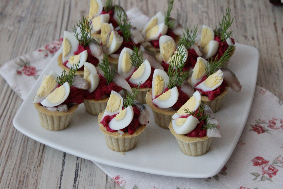 Такую "Селёдку под шубой" Вы еще не пробовали: закусочные тарталетки с эффектным внешним видом