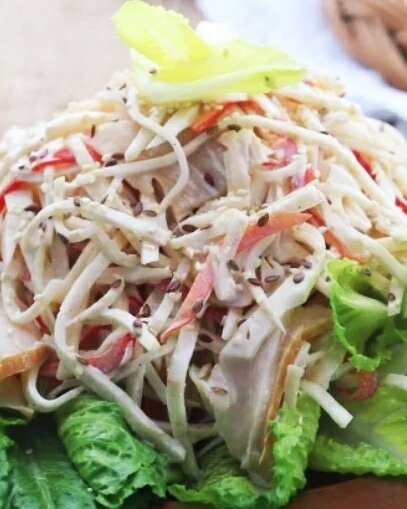 Салат из копченого палтуса с корнем сельдерея