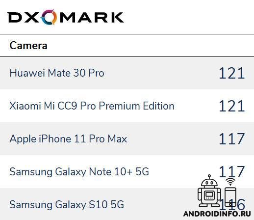 За прошлые 11 месяцев 2019 года специалисты провели тест 31 нового смартфона, при чем тестировали как флагманские устройства, так и устройства среднего с бюджетными классов. Отмечен был и прогресс развития мобильных камер. На рынке мобильных гаджетов были найдены инновационные в плане аппаратной и программной составляющей фотокамеры в смартфонах. Специалисты компании отметили, что выставленная средняя оценка выступает хорошим показателем всесторонних функциональных возможностей оптики смартфона. Лидеров в тесте оказалось два: Mate 30 Pro от Huawei и CC9 Pro Premium Edition от Xiaomi. Бронзовую медаль забрало «яблочное» устройство iPhone 11 Pro Max и именно он и забрал лидерство в видео съемке. На четвертом месте разместился Note 10+ 5G от Samsung,
