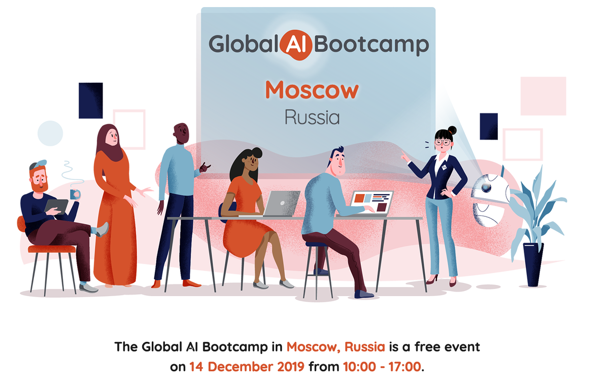 via https://t.me/MicrosoftRus 14 декабря (суббота) с 10:00 - 17:00 (Москва, Новорязанская, д. 8) пройдёт Global AI Bootcamp - одновременно по всему миру при поддержке 90 ИТ-сообществ. Дмитрий Катсон, MVP: “Как создать разумное приложение не зная никаких языков программирования? Думаете это нереально? Очень даже реально, а главное просто!”. В данной сессии я покажу как с помощью простых сервисов Microsoft: Azure Machine Learning Studio и CustomVision вы сможете добавить “разум” в вашу учетную систему или мобильное приложение - без единой строки кода!