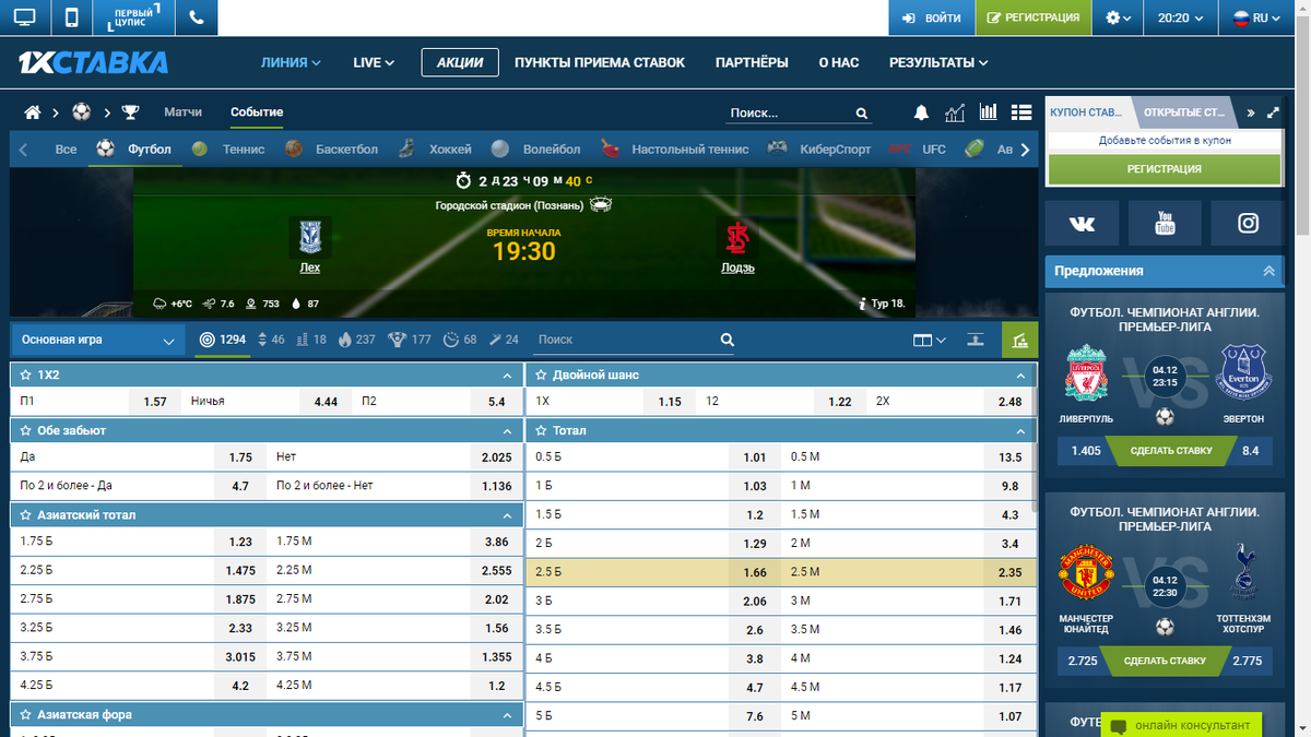 Всем доброго времени суток,сегодня ставка на субботу 7 декабря и это матч чемпионата Польши Лех-Лодзь. Смотрите тут небольшая предыстория: в прошлом сезоне в чемпионате Польши произошла в каком-то смысле сенсация и чемпионом стала команда Пяст,хотя до этого долгое время между собой чемпионство разыгрывали Легия и Варшава и Лех. Но в прошлом году Легия была второй, а Лех вообще 8,в этом сезоне борьба не менее упорная сейчас идет в чемпионате Польши. Естественно не Легия, не Лех не может устраивать то, что было в прошлом сезоне. Обе команды намерены вернуть лидирующие позиции, хоть ни одна из них сейчас не на первом месте не находится. Команды играют очень уверенно, при этом,в последнее время, по стоимости игроков Лех делит первое место с Легией по цене команды, ну то есть в обеих командах собраны игроки очень высокого класса, относительно уровня чемпионата Польши. Ну да ладно, футбол- не ценники,что касается самой игры, Лех и до перерыва на игры сборных и особенно после него в хорошей