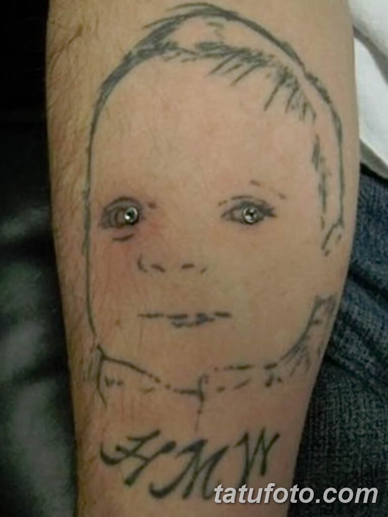 Татуировки довольно удивительны. Вы не можете не оценить, насколько прекрасными они могут быть. Это отличная идея, чтобы почтить память особых людей, мест или времен на своем теле навсегда . Если поискать в Google, вы можете легко найти сотни красивых, качественных и завораживающих татуировок конструкций . Но, так же легко найти сотни ужасных татуировок (те, которые выглядят так, как будто они были сделаны в темноте пятилетним ребенком, или просто совершенно безвкусные. Если вы получаете радость от просмотра последнего типа, то вот 5 ужасных татуировок, которые вы, вероятно, еще не видели, но определенно должны. Татуировка своего ребёнка Надеюсь, что эта малышка намного симпатичнее в реальной жизни, потому что она выглядит довольно страшно на этой татуировки. Я уверен что наситель этой татуировки очень мило поступил однако ему не повезло с тату мастером. Малоизвестная знаминитость Я считаю что делать татуировку знаменитости это плохое решение, как минимум потому что слава приход