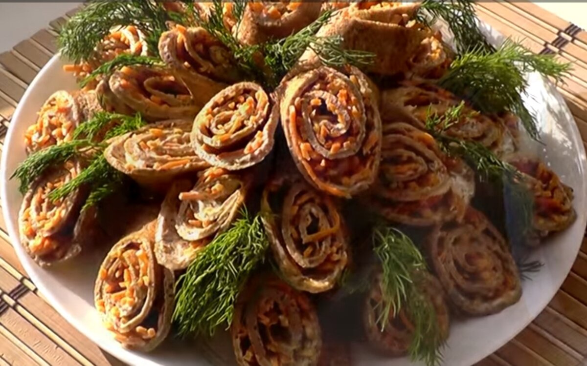 Очень вкусные печёночные рулетики с морковкой по-корейски.
