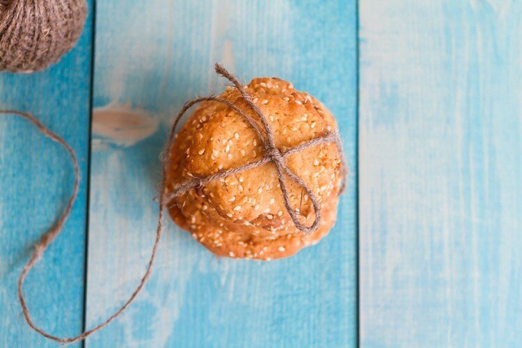 - Муку, соль, разрыхлитель и ванилин смешать и просеять в масляную смесь. Перемешать до однородности, но не вымешивать — долгое замешивание сделает тесто грубым. Добавьте кунжут и также аккуратно смешайте.