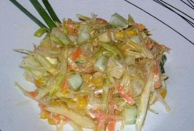 Cалат с капустой, свежими огурцами, яблоками и ананасами
