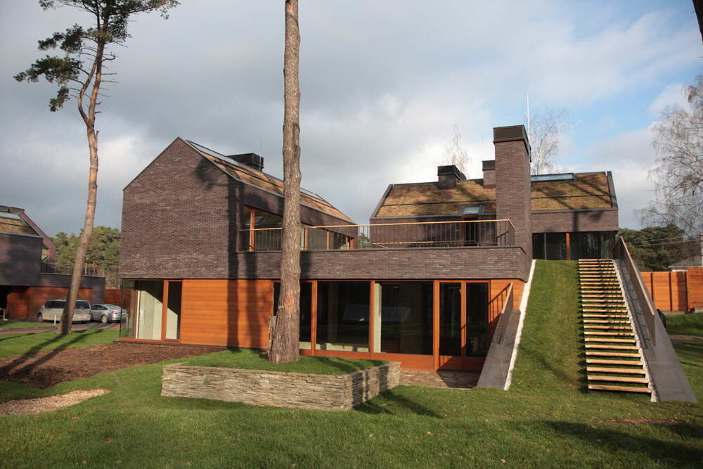Клубный поселок «Любушкин хутор», названный девелопером Evergreen, – один из лучших примеров «зеленой» архитектуры в России, новый взгляд на загородную жизнь. Расположен он на 6 га основного леса в 15 км от Москвы по Рублево-Успенскому шоссе. Для полной интеграции с природой, вопреки стереотипам, в нем нет заборов, озеленены крыши и пандусы домов. В центре каждого дома остекленное патио. Поселок – образец гармонии и функциональности, простоты, современности. Главной особенностью домов, расположенных в этом «клубном», лишенном заборов между индивидуальными участками поселке, является применение зеленых насаждений в качестве покрытия пандусов, кровель и террас. Для этой цели используются седумы – многолетние зимостойкие растения семейства толстяниковых (Crassulaceae). У седумов есть несколько ценных свойств: они довольствуются минимумом почвы, поэтому «пирог» кровли не превышает 10 см; им требуется не много влаги, соответственно, отпадает необходимость в искусственном поливе; в зависимос