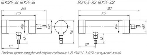 Сосуды уравнительные БСУ и конденсационные БСК предназначены для поддержания постоянного уровня жидких сред в импульсных проводках(импульсных линиях) систем управления технологическими процессами на объектах атомной энергетики. Уравнительный сосуд БСУ применяется при измерении уровня жидкости в резервуаре с использованием датчика разности давлений. Встраивается в импульсную линию, соединяющую газовую подушку резервуара с одной из рабочих полостей датчика. Имеет воздушник — отверстие для выпуска воздуха при заполнении измерительной системы рабочей жидкостью, закрываемое пробкой. Сосуды БСУ могут быть использованы при измерении расхода водяного пара по методу переменного перепада давления: Конденсационные сосуды БСК специально предназначены для систем измерения расхода водяного пара по методу переменного перепада давления. В отличие от БСУ не имеют воздушников и элементов крепления – ушек. Технические характеристики Сосуды изготавливаются в соответствии с техническими условиями ТУ 4212