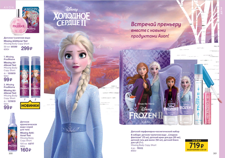 Всем привет! С вами ваш Агент Эйвон и сегодня я расскажу Вам о продукции Эйвон для детей. Поехали! Компания выпускает продукцию не только для женщин и мужчин. Она не забывает и о наших детишках. Вот такую яркую коллекцию к премьере мультфильма Холодное сердце II выпустили в этом каталоге. Отличный подарок для девочки! Ох если бы в моем детстве были такие наборы, то я бы пищала от восторга! В коллекцию входит : детская туалетная вода, детская ароматическая вода-спрей, детский бальзам для губ и подарочный набор в очень красочной упаковке! Так же в коллекции есть средства для купания : детский гель для душа, детский шампунь для волос и детский спрей для облегчения расчесывания волос. Еще есть коллекция для мальчиков по мотивам комиксов Мстители MARVEL. Сюда входят : детская туалетная вода, детский шампунь-кондиционер, детский гель для душа. Обязательно порадуйте своих маленьких героев такими наборами. Им понравится! Есть в каталоге и вот такие комплекты постельного белья и пижамы: для