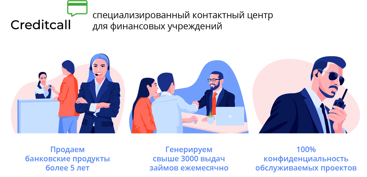 АЗ: Creditcall — это аутсорсинговый контакт-центр, который уже более пяти лет помогает банкам и микрофинансовым организациям находить клиентов для их продуктов, в основном для карт и займов.
