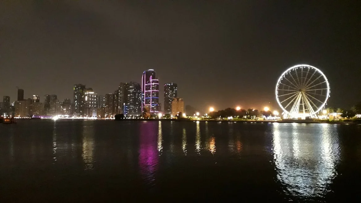 Благодаря всем этим перипетиям, на прогулку по Шардже у меня остается буквально один вечерний час, пока организм еще что-то соображает. За это время я успеваю оценить космополитичную атмосферу на улицах, подышать жарким мартовским воздухом на берегу озера Халид, восхититься панорамой сияющих небоскребов на другом конце водной глади и полюбоваться подсветкой мечети Масджид аль-Нур. Впечатления - на фотографиях. Обидно, что не удалось увидеть больше.