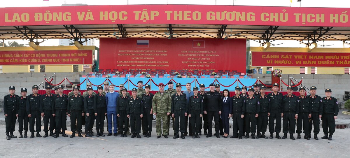 5 декабря в рамках официального визита делегации Росгвардии в Социалистическую Республику Вьетнам директор Федеральной службы войск национальной гвардии Российской Федерации генерал армии Виктор Золотов посетил батальон специального назначения Министерства общественной безопасности Социалистической Республики Вьетнам.