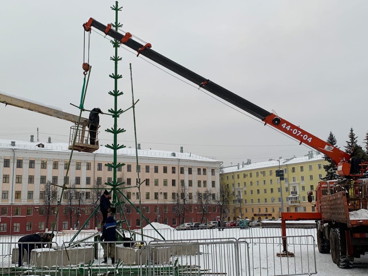 На Театральной площади начали устанавливать главную ёлку города