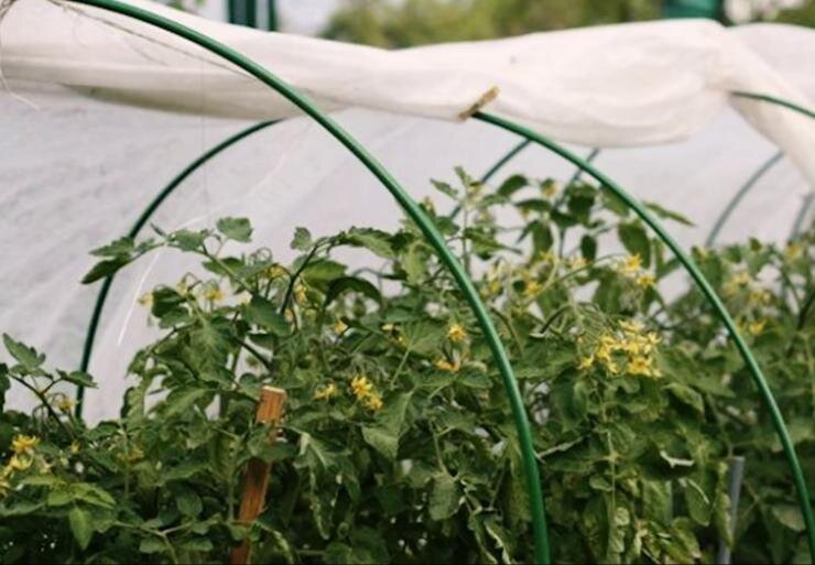 - Более плотный материал плотность 40-60 г м кВ надо набрасывать на дуги, иначе растения могут пригнуться под тяжестью.