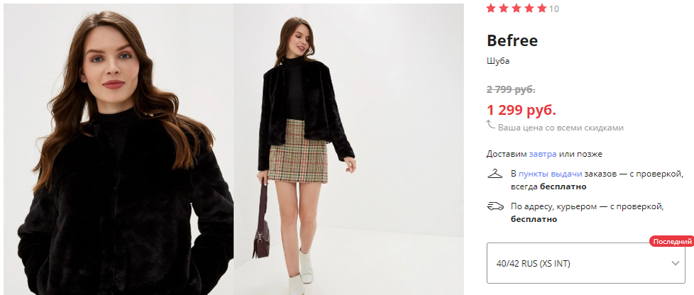 Стоимость вещей — один из главных факторов покупки. Не все могут себе позволить норковую шубу за 100 тысяч ₽. Согласно данным магазина lamoda.ru, самую дешёвую шубу можно купить всего за 1299 ₽ (Befree), но она будет короткой и сделанной из искусственного меха. Самый дешёвый пуховик стоит всего на 20 ₽ дешевле — 1279 ₽ (oodji).