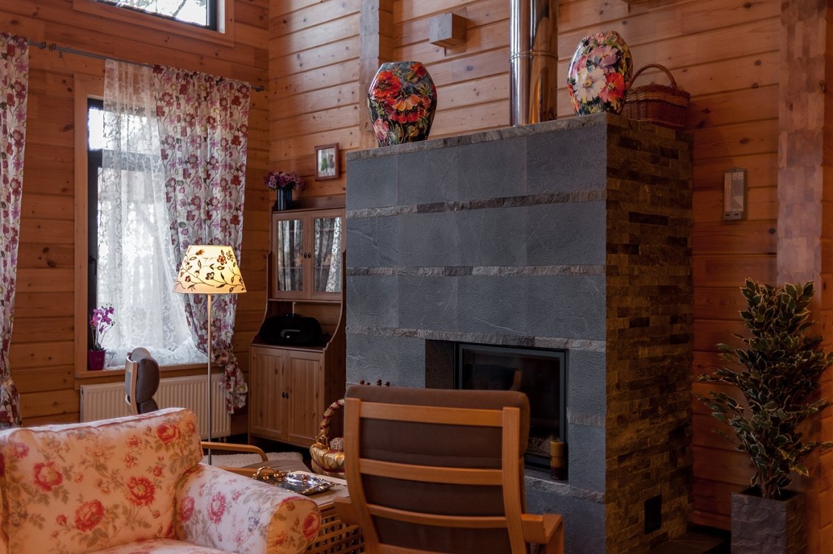 Какими бы развитыми ни были современные технологии, человека как привлекал, так и привлекает первобытный огонь, на который хочется любоваться промозглыми вечерами. Неудивительно, что камин в загородном доме не диковинка, а вполне привычная конструкция, независимо от выбранного стенового материала. И деревянные стены никоим образом не являются противопоказанием, скорее, накладывают некоторые ограничения по конструктиву. При соблюдении технологии строительства и эксплуатации, камин будет обогревать и радовать, и никогда не станет источником потенциальной опасности. Разновидности каминов Как и в каменных домах, в доме из бруса или бревенчатом срубе можно устроить настоящий камин. Кирпичный – самый распространенный материал для строительства каминов, при кладке комбинируют облицовочный или рядовой кирпич с огнеупорным, шамотным. При желании можно использовать и только шамотный, он достаточно декоративен, но характеризуется не только устойчивостью к прямому огню и высоким температурам, н