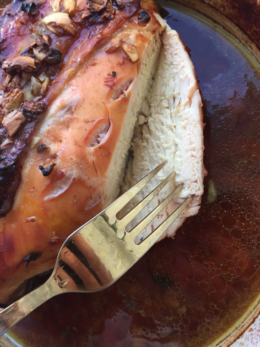 Приветствую вас, всех всех! Сейчас вы узнаете рецепт самой сочной куриной грудки. Вы можете еще кушать с гарниром, добавлять в салаты, класть на бутерброды. Именно по этому рецепту грудка вкусная даже холодная. Нам понадобится: Куриная грудка – 2 шт. (у меня 2 кг) Чеснок – 1 головка Соевый соус – 50 – 80 г Соль – 1,5 ч. л. Базилик сушёный – 1 ч. л. Горчица – 1 ч. л. (не обязательно) Хрен – ½ ч. л. (не обязательно) Лавровый лист – 1 шт. Включаем духовку на максимум и оставляем её минут на 30 прогреваться. Чтобы мясо просолилось, протыкаем его ножом. Базилик добавляем к горчице и хрену. Далее вливаем соевы соус (можно на глаз). Тщательно перемешиваем. Солим грудку. Если запекаете со шкуркой, не забудьте посолить под ней. Чеснок давим и добавляем в маринад. Промазываем грудки маринадом. Если у вас одна грудка, переверните её вниз мясом, чтобы она была в жидкости, пока духовка греется или оставьте на ночь. Если у вас 2 грудки как у меня, сложите их как на фотографии ниже. У мен