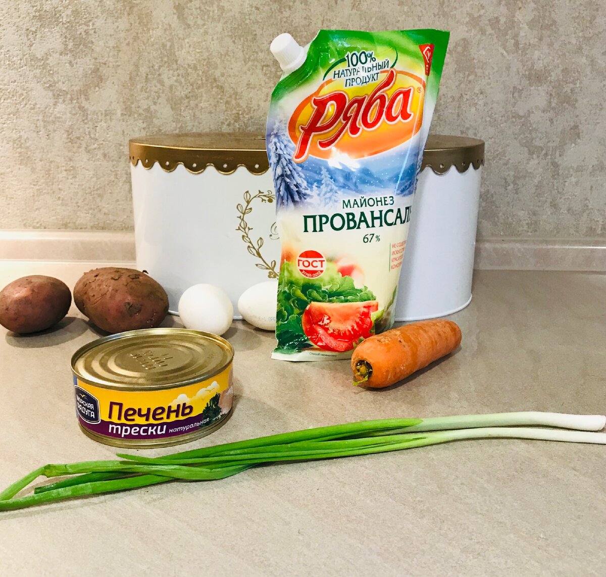 Всем привет! Ещё один замечательный рецепт с печенью трески. На этот раз салат. Делается довольно быстро. Вкус необычный и понравится всем! Главное удержаться и не съесть сразу. Можно подавать также в тарталетках. Ингредиенты: Приготовление: Яйца отварить вкрутую, морковь и картошку почистить и тоже отварить. Далее нарезать кубиками морковь, картофель и яйца. Зеленый лук порезать на мелкие кусочки. Печень трески открыть консервным ножом и слить лишнее масло. Далее ее следует измельчить. Я обычно просто разминаю ее вилкой. Ведь она имеет такую рыхлую структуру. Теперь нужно перемешать все ингредиенты, добавить немного молотого чёрного перца и соли. Не забывайте, что печень трески сама по себе уже соленая, так что посолить надо совсем чуть-чуть. Теперь осталось только заправить майонезом и вкусный салат готов! Приятного аппетита! Понравилось? Поддержите автора, подписывайтесь на мой канал! Больше доступных и вкусных рецептов с любовью. Популярная закуска на новогодний стол - фарширован