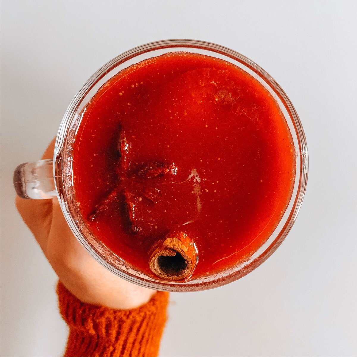 вкусный и полезный рецепт для уютных зимних вечеров, чтобы согреваться без алкоголя видео-рецепт за 1 минуту [ безалкогольный глинтвейн ] ⠀ • сок апельсина 150 мл (~2 апельсина) • сок яблочный 250 мл (~5 шт) • сок клюквы 600 мл (~600 гр ягод клюквы, либо можно смешать клюкву и чёрную смородину, у меня 200 гр клюквы + 400 гр чёрной смородины) • сироп топинамбура 2 ст л • 1 апельсин (дольки) • гвоздика 10 шт • звездочки аниса или бадьян 3 шт • лавровый лист 2 шт • имбирь 1 чл • мускатный орех 1 чл • палочки корицы 2 шт ⠀ 1/ сделать сок из 2 апельсинов 2/ отдельно сделать сок из яблок и ягод - я делала сок через соковыжималку. Ягоды у меня были замороженные - я их разморозила и помыла 3/ в кастрюлю налить сироп топинамбура и сок апельсина и довести до кипения, а затем убавить огонь на средний и томить ~1-3 мин, периодически помешивая 4/ добавить сок яблок и ягод, специи и дольки апельсина. Все перемешать и довести до кипения, а затем убавить огонь и томить ещё ~10-15 мин под крышкой ⠀