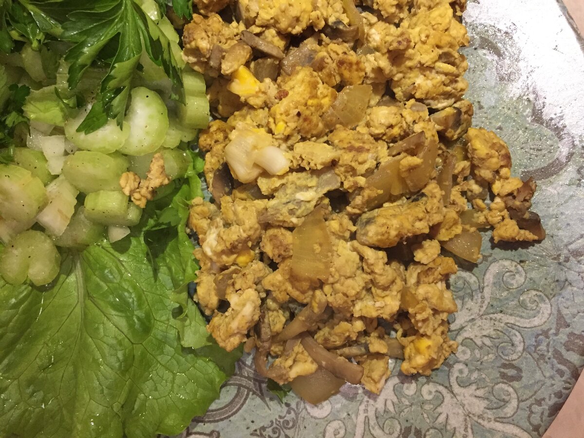 Приветствую вас, мои дорогие! Сегодня поделюсь с вами рецептом быстрого, вкусного и сытного ужина. Это коронное блюдо моего мужа, мы его просто обожаем! Нам понадобится: Яйца куриные – 6 шт. Лук – 150 г (1 крупная луковица) Грибы – 90 г (6 маленьких грибочков) Соевый соус – 40 -45 г Лук нужно порезать крупными кубиками. Грибы нашинковать ломтиками. На раскаленной сковороде обжариваем лук и грибы, огонь должен быть небольшим. (можно на сухой, можно добавить немного масла) Когда лук станет прозрачным, добавляем яйца и соевый соус. Перемешиваем всё лопаткой. Так же на медленном огне доводим яичницу до готовности, постоянно помешивая. Вот ваш ужин и готов. Приятного аппетита! Расскажу вам немного полезностей. 1. Яйца Яичный белок является легкоусвояемым. В 100 г яичного белка чистого белка больше чем в рыбе и мясе. Так же в составе есть лецитин, он препятствует откладыванию холестерина на стенках сосудов и поддерживает здоровье печени. Желток не менее ценен. В нём содержатся Ом