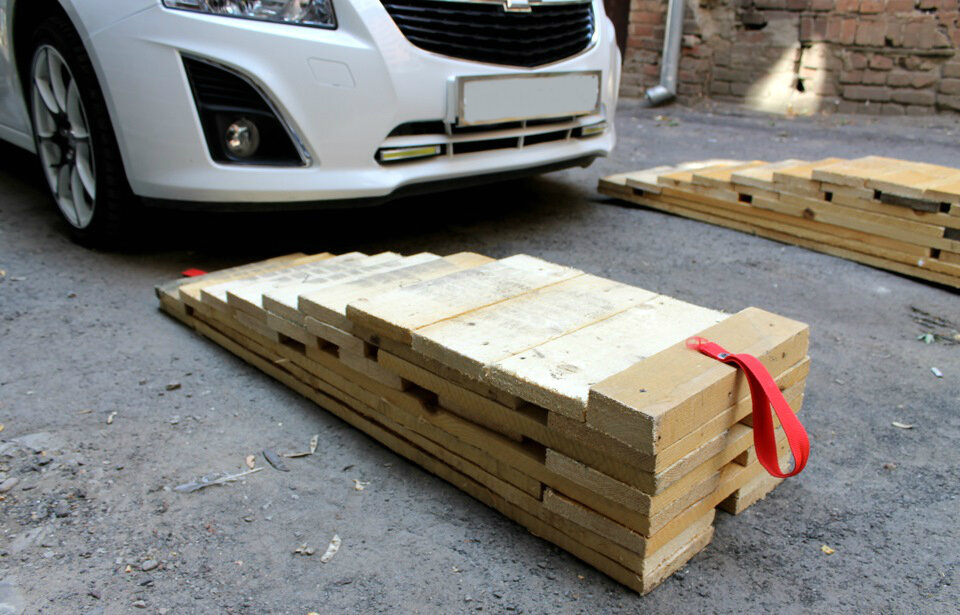 Идея создания данного девайся пришла мне в голову, когда я находился в деревне и мне срочно понадобилась яма для осмотра ходовой и двигателя автомобиля Тема: самодельные мини эстакады Автомобиль: все В теплое время года я очень люблю проводить время на природе за занятием любимой рыбалкой или обыденными делами в деревне. Но при поездке очередной раз в деревню на выходные по дороге я обратил внимание на странный звук двигателя, немного высокий. Вскоре после этого вылез еще и стук в передней подвеске по езде на неровной поверхности. Найти в деревне автосервис или хотя яму оказалось задачей невыполнимой, так как их там просто нет, а до города 130 км. И в этот момент я задумался об эстакаде. Раньше в деревнях делали самодельные эстакады на краю обочины возле, но те варианты, которые я нашел оказались весьма небезопасные. И тогда из подручных средств решил сделать мини эстакаду самостоятельно. После ремонта фасаду у меня остались доски разной длины, путь которым был заказан в костер для пр