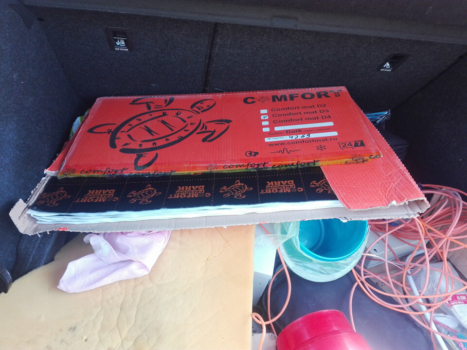 Всем привет. Сразу напишу ничего сложного в этом нет. Тоже сперва чего то боялся, но нет все можно сделать. Для меня трудновато потолок вытащить было с салона. Остальное если желание есть все сделаете. Итак начинаем. Прикупил 4 листа виброизоляции Comfortmat D3 Два листа шумопоглотитель Comfortmat Vision 6 мм. Берем съемники, отвертки и начинаем отщелкивать . Боковая стойка там болт под звездочку Передние стойки боковые, все на защелках Далее снимаем потолок и с багажника вытаскиваем его, чтоб не мешал работать. https://www.drive2.ru/l/540982811683718203/ Видим заводскую шумоизоляцию Что можем отдираем так Далее что прилипло, берем бензин "галоша" хорошо смачиваем и начинаем отдирать. Обильно обезжириваем потолок, заводскую сзади виброизоляцию не трогал приклеено хорошо. Разрезаем виброизоляцию и клеем Далее снова обезжириваем и клеем шумопоглотитель Лучше сразу на будущее протянуть провода для видеорегистратора, радара детектора и.т.д все что душа пожелает чтоб потом за