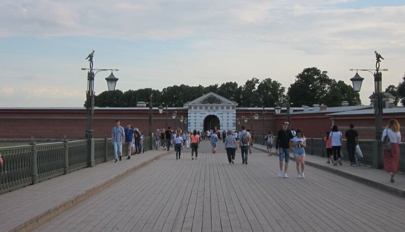 Всего в Петропавловской крепости шесть ворот – пять ведут непосредственно в крепость, а шестые – Иоанновские, находятся в Иоанновском равелине крепости. С Иоанновских ворот и начнем. Большинство посетителей крепости начинает свой маршрут именно через них.
