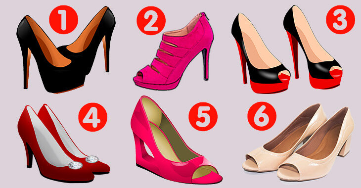 Тест поможет разобраться в вашем подсознании. Ведь именно там, в неосознанном, сокрыта истинная правда о том, что по-настоящему о вас думают мужчины. Закройте глаза и подключите воображение. Вы собираетесь на свидание с мужчиной собственных грез, какие туфли вы наденете? Представили? А теперь посмотрите на картинку и выберете те туфли, которые наибольшим образом похожи на вашу фантазийную обувь.