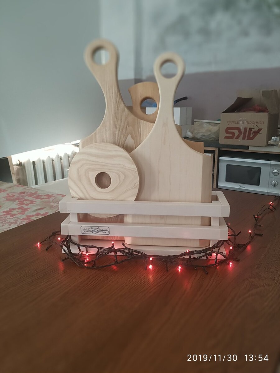Новый год неумолимо приближается. Повсюду витает праздничная атмосфера, зажигаются новогодние иллюминации. Сейчас, как никогда, остро стоит вопрос с выбором подарков для своих близких. Я уже раньше делала обзор подарков к Новому году из практики заказов на нашем производстве. Кто не читал, и интересно, нажимаем сюда и смотрим. В этом году мы разнообразили нашу производственную линейку и разработали новый вид продукции, а именно набор разделочных досок. Ранее мы не производили разделочных досок. Мы делали их как подарки при заказе кухонных гарнитуров. Изучили спрос, и поняли важность и необходимость этой маленькой детали на каждой кухне. И мы решили этот первый наш набор разыграть среди подписчиков Инстаграмма и кому-то подарить. Чем интересен этот набор? Этот набор состоит из трех разделочных досок различного размера. При этом досочки изготовлены из различных пород древесины. Одна досочка изготовлена из ясеня, одна-из дуба, и одна-из ольхи. Чтобы дополнить этот образ, одна досочка