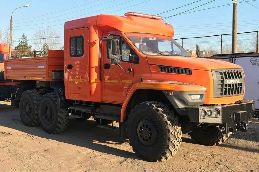 Автозавод "Чайка-Сервис", известный производитель спецтехники из Нижнего Новгорода, выпустил партию полноприводных грузовиков "Урал Next" 6х6 с двухрядной семиместной кабиной собственной разработки.