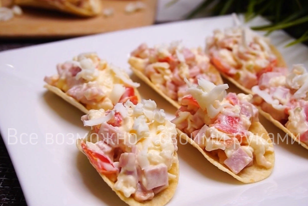 Добрый день! Сегодня приготовим закуску, которая улетает со стола в один миг! Основа этой закуски будут чипсы, их очень удобно брать и выглядит не обычно. Уже приближается новый год, эта закуска идеально подойдет к праздничному столу. Берите себе на заметку этот рецептик)) Кстати, сейчас я буду выпускать для вас статьи на новогодние темы, с интересными советами и рецептиками, так что подписывайтесь на мой канал, чтобы не упустить всё самое интересное 🧡. Итак, приступим к приготовлению закуски! Ветчину ( я сейчас использую ветчину индейки ) нарезаем мелким кубиком. Нарезаем помидорки и отправляем их в миску к ветчине. На крупной терке натрем плавленый "Российский" сырок и отправим в миску к ингредиентам. Добавляем щепотку соли, заправляем майонезом и перемешиваем. Подготовим чипсы ( лучше всего подходят чипсы ровной формы, я использую Принглс ) . Раскладываем салат в чипсинки, примерно по одной ложке. Сверху можно посыпать плавленым, тертым сырком. Прошло всего минут 10-15 и у на