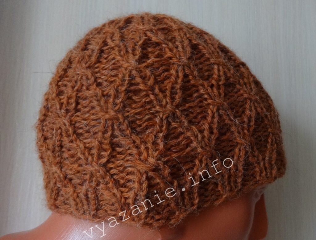 Зимняя вязаная шапка для мужчин и женщин. Этот рисунок хорошо смотрится, когда растянут. Вязать будем снизу по кругу. Потребуется: 1 моток пряжи ALPACA Islandia 50 г = 75 м, спицы носочные №6. Эта пряжа очень мягкая, пушистая и тёплая. Я была поражена, что хватило одного мотка пряжи. Обычно на шапку расходуется 100 г. Можно, конечно, вязать из другой пряжи. Набираем на спицу №7 крестообразным набором 60 петель +1 для смыкания в круг. Смыкаем работу в круг. Внимательно смотрим, чтобы петли лежали ровно, не скрутились. Распределяем на 3 спицы по 20 петель. Дальше будем вязать носочными спицами по схеме. Сначала вяжем резинкой *2 лицевые, 2 изнаночные* 5 рядов. В следующем ряду делаем перехлёсты. Смещаем дорожки лицевых и изнаночных. На схеме в 6 ряду первую петлю вяжем обычной лицевой. Следующие две петли меняем местами, используя дополнительную спицу. Затем следующие 2 петли опять меняем местами. Здесь всё по логике: лицевые петли как бы сверху, изнаночные позади лицевых. Потом 3 ряда
