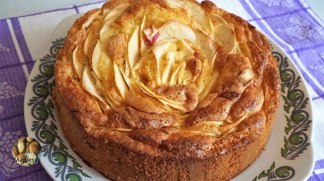 Яблоки (желательно кислые)500-600 гр Мука160 гр Сахар160 гр Соль1 щепотка Яйца 4 шт. 1. Нарезать яблоки дольками или кубиками. Яблоки лучше брать кислых сортов. 2. Взбить яйца с сахаром и 1 щепоткой соли в светлую густую массу. Чтобы убедиться, что масса уже хорошо взбилась, проведите линию венчиком, если она остается видимой в течение 1-2 секунд, а потом растекается, то яйца с сахаром уже хорошо взбиты. Если же она сразу растекается, то нужно взбивать еще. 3. Просеять муку в яично-сахарную смесь и аккуратно перемешать лопаткой движениями снизу вверх. С бисквитным тестом нужно работать осторожно, чтобы сохранить по максимуму его воздушность. 4. Форму выстелить пергаментом или смазать сливочным маслом, припылить мукой. Вылить ½ часть теста, выложить половину яблок нарезанных дольками, сверху залить тестом и выложить оставшиеся яблоки. Если нарезать яблоки кубиками, то можно их добавить в тесто, аккуратно перемешать и потом выложить всю массу в форму для выпекания. 5. Выпекать в течение