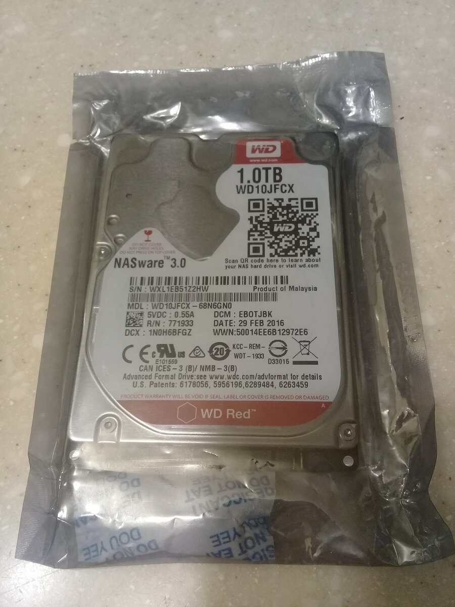 Выделил денег на отдельный пятый элемент SATA диск для сервера HPE ProLiant MicroServer Gen10. Диск будет использоваться под систему. Форм-фактор пятого диска 2.5. Ранее я уже вставлял пару дисков: Диски для HPE ProLiant MicroServer Gen10 В данный сервер можно воткнуть в отсек для DVD ещё один пятый диск. Для этого потребуется отдельная опция: 870212-B21 HPE MicroServer Gen10 Slim SFF SATA Enablement Kit Выбор пал на модель — WD10JFCX. Цена вопроса примерно 4000 руб. Вид без упаковки: С обратной стороны: Про диски Western Digital — WD Red SATA-III 1TB WD10JFCX 2.5" Я выбрал серию RED. Western Digital позиционирует диски из этой серии как самые оптимальные для NAS. Для каждой совместимой системы NAS найдется накопитель WD Red, который позволит решить все ваши задачи по хранению данных. Благодаря емкости дисков до 10 ТБ линейка WD Red позволяет клиентам, стремящимся построить высокопроизводительное сетевое устройство хранения, использовать самый широкий набор возможных решений. Диски WD