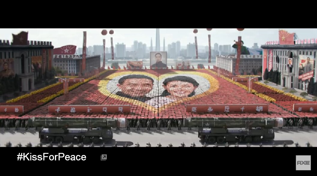 переплелись 4 истории любви. На видео показаны военные конфликты в местах очень похожих на Балканы, Вьетнам, а также пародию на правящие семьи Ирана и Северной Кореи. Месседж компании сформулирован старым антивоенным лозунгом хиппи 60-х - "Занимайтесь любовью, а не войной". Один из 4 сюжетов видеоролика обыгрывает эффектное признание в любви молодого лидера Северной Кореи к своей прекрасной супруге. Сняли его в поддержку Дня глобального прекращения огня или просто Дня Мира (Peace One Day) - 21 сентября. Вирусное видео размещенное на официальной странице на YouTube просмотрели почти 8 миллионов раз. Ролик многим понравился, люди его стали резать и выкладывать на своих страницах. В результате появления клонов первоначальный смысл послания потерялся. 4 декабря северокорейское информационное агентст