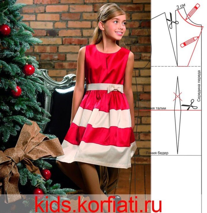 Если бы мы вас спросили, с чем у вас ассоциируются новогодние праздники, то наверняка бы услышали ответ: елка, Дед Мороз и Снегурочка, подарки, конфеты-мандарины, веселье, фейерверки… Ничего не забыли? А как же красивое платье? Ведь сейчас самое время его сшить! И у нас, как всегда, есть для вас особенное предложение — стильное двухцветное нарядное платье для девочки расклешенного силуэта, со встречной складкой по горловине и кокетливым бантиком на съемном пояске. Просто чудо! К тому же платье выполнено в самых новогодних цветах — красном и белом. Выкройка нарядного платья для девочки моделируется и шьется очень просто. Моделирование фасона платья произведите по базовой выкройке платья для девочки-подростка. ВАЖНО! Заложите складки в направлениях, указанных стрелками, затем скорректируйте вырез горловины карандашом (при необходимости), вырежьте выкройку по горловине лифа и только затем раскройте складки. Читать материал полностью на сайте - https://kids.korfiati.ru/vyikroyka-naryadn