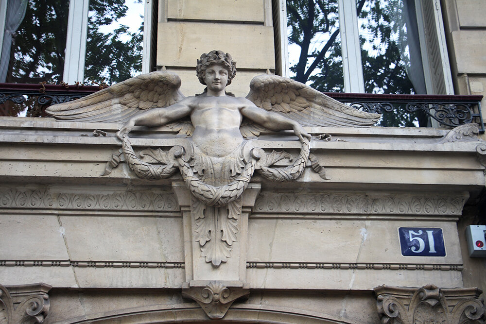 Характерные дома французской столицы ни с чем не спутаешь. Кажется, они все одинаковые. Но, стоит присмотреться и видишь на каждом доме свои детали. Это могут быть и барельефы, и скульптурные композиции, и даже разный узор балконных решёток. Двери, это отдельная песня. Они тоже разные, с вставками из цветного стекла, с коваными решётками, с резными деталями и разными ручками.