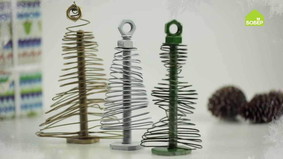 Из проволоки, куска фанеры, шпильки и гайки с помощью пассатижей можно сделать оригинальные ёлочки, которые станут чудесным новогодним подарком для друзей и коллег и украсят любой интерьер. Сделано своими руками! Больше интересного и полезного ищите на bober.ru