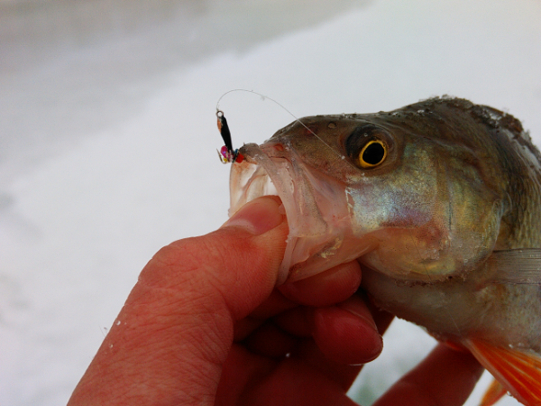 Статья на портале РНарод Всем привет! Всю неделю я думал о том, как мне закрыть сезон твёрдой воды, снять интересный видос и наконец-то уже ловить на спиннинг, вот наступает вечер пятницы , опрашиваю знакомых и родственников, все отказываются под любым предлогом ехать на рыбалку, думаю, ладно, путь воина - путь одиночки... Теперь, нужно выбрать водоем, т.к. транспорта нету, вариантов не много - домашний водоем. Готовлю всю съемочную аппаратуру и снасти. Утро, 9:30, я на месте, ветер аццкий, но, вроде, тепло. Народу немного - ещё круче, но никто не ловит, отошёл по дальше от всех пробурился и вскоре получил первые поклевки и первых ельцов, поймал 3-х и на этом все. Дальнейшие 10 лунок приносят одного неплохого окунишку и несколько мелких чебаков. Потом пошёл бурить вдоль берега, прошёл около километра, сделав лунок 20, снял небольшого окуня и несколько ельцов, дело было все хуже и хуже, ветер усиливался и на двигались тучи. До 12 :00 поймал окушарика неплохого и ушёл на обед. Пока