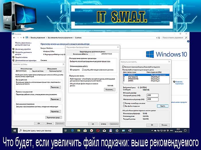 Друзья, вот мы и подошли к техническим моментам, тому, где и как изменять размер файла подкачки в «десятке»: