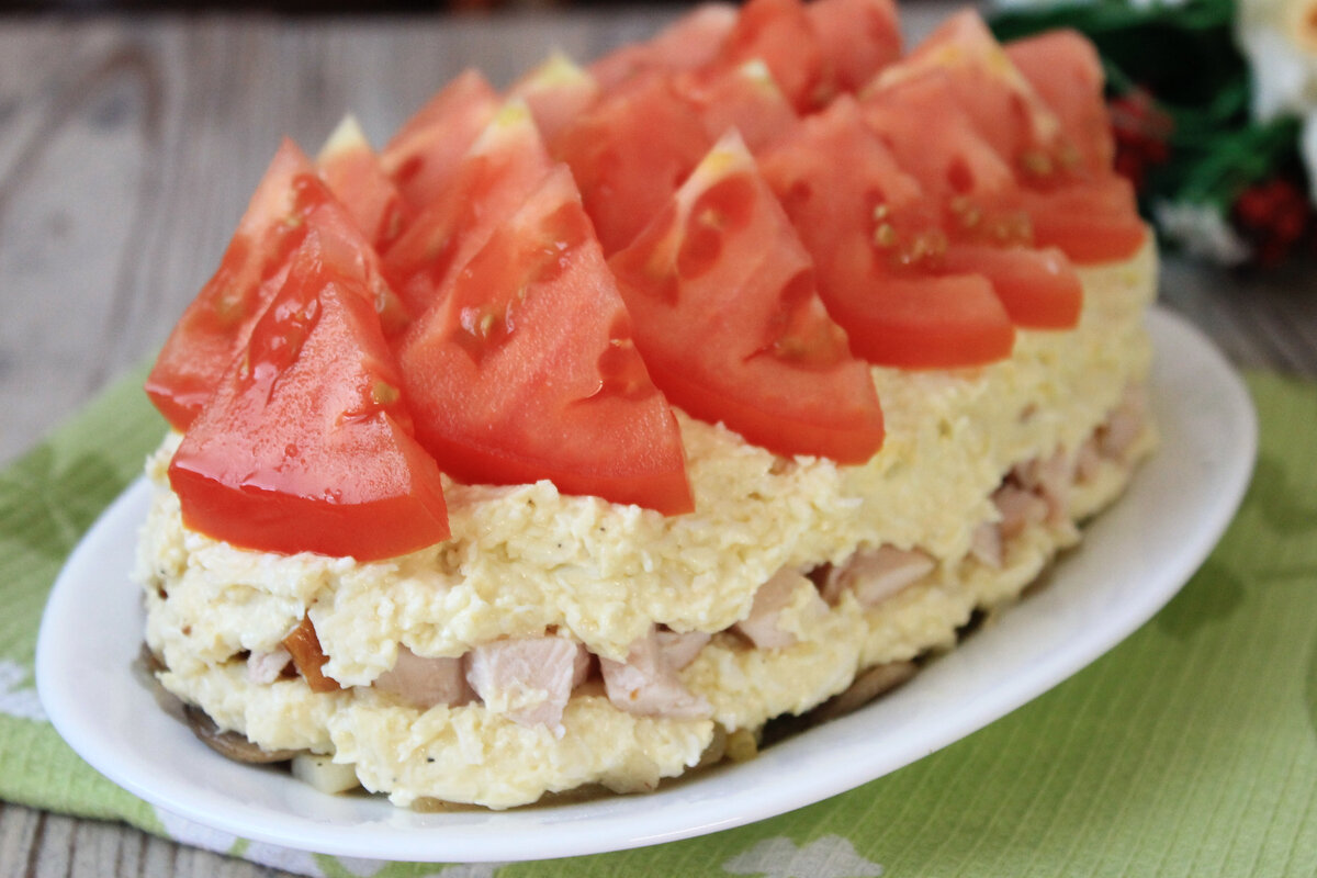 Здравствуйте, меня зовут Оксана! Рада приветствовать всех, кто заглянул на мой кулинарный канал! Читайте, пишите комментарии, ставьте лайки — как говорится, это мощный "двигатель прогресса"... Уже на протяжении некоторого времени, мне частенько "на глаза" попадается рецепт салата, под названием "Любимый муж" — ну, думаю если он так популярен, надо приготовить... И, взяла да и приготовила! И, что в итоге... Позже напишу! Ингредиенты для приготовления: Копченая куриная грудка — 200 г Варёные куриные яйца — 3 шт. Плавленые сырки — 2 шт. Шампиньоны свежие — 200 г Лук репчатый — 1 шт. Помидоры — 1-2 шт. Чеснок — 2-3 зубчика Соль, черный молотый перец Масло растительное для жарки грибов и лука Майонез, горчица Шампиньоны моем и нарезаем пластинками, прямо шляпку вместе с ножкой. Затем перекладываем в сухую сковороду, и на медленном огне начинаем обжаривать. Через какое-то время шампиньоны пустят сок — обжариваем их до тех пор, пока он не испарится. Время зря не теряем... Репчатый лук нарезае