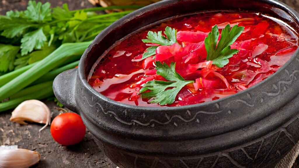 Этот рецепт мне передала моя бабушка с Кубани.. его сложновато готовить,но он этого стоит. 1. Берем кастрюлю на 5 литров 2. Наливаем 3,8 л.холодной воды 3. Опускаем в кастрюлю 400 г нежирных свиных ребрышек с мясом,можно добавить нежирной говядины на ребрах или кусочками 300 гр 4. Доводим до кипения и снимая периодически пену ,варим на медленном огне примерно 40 минут,солим по вкусу. 5. Пока варим бульон,нужно взять 150 гр курдюка бараньего, порезать на небольшие кубики. После этого берем сковороду и растапливаем его до образования шкварок 6. В жир со шкварками добавляем 300-350 грамм квашенной капусты , закрываем крышкой и тушим на медленном огне 30-40 минут иногда помешивая. 7. Если есть еще курдюк ,нужно вытопить немного жира также со шкварками на другой сковороде,если нет можно взять растительное масло 5-6 ложек. 8. В этот жир или масло положить нарезанную кубиками свеклу,обжарить ее немного ,потом залить ее рассолом от капусты и тушить под закрытой крышкой около 40 минут