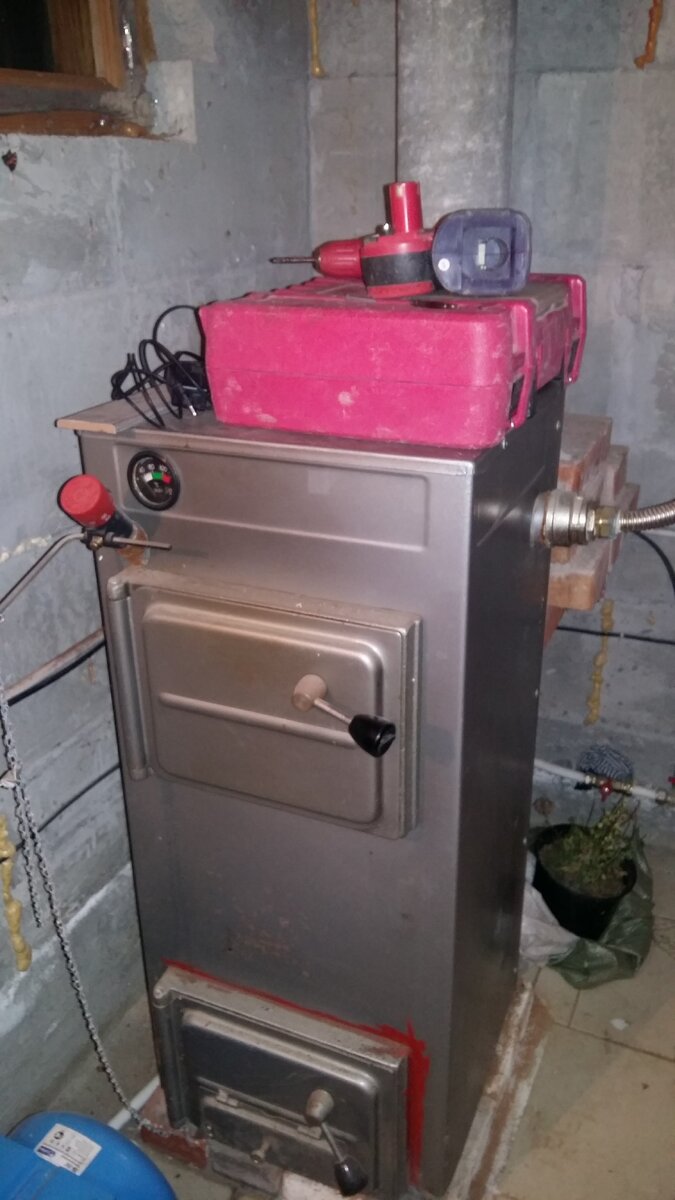 Крайне редко мне попадаются объекты, где нужно смонтировать систему дымохода для твердотопливного котла. В основном эту работу выполняют, мастера, которые специализируются на комплексном монтаже системы отопления дома. Собрать дымоход это одно, а подключить всю систему и чтобы все работало, это совсем другое. Оговорюсь сразу, что речь идет о бюджетных котлах и прошу не сравнивать их с зарубежными аналогами или автоматическими котлами. Уже не раз замечал, общаясь с заказчиками, многие не используют котлы по своему прямому назначению. Я и сам в свое время, проживая на даче, купил себе котел, работающий на дровах и угле. Топил не больше месяца, летом продал его и купил электрический. Все это время он работал на встроенном тэне. Для меня это была морока, приезжая с работы, бежать в котельную, растапливать и потом бегать и следить за ним. Пример в этой статье, точно такой же. Построил хозяин дом, купил и смонтировал котел. Вот причины, почему этот котел служит в виде полочек для вещей. Перв