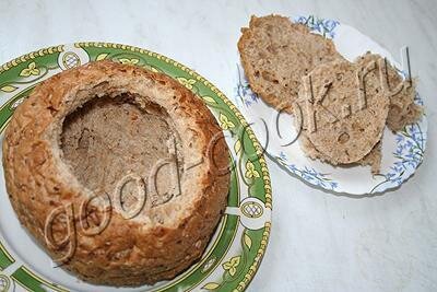 1. Если горшочек делается из хлеба с плотной мякотью и толстой коркой - ржаного, пшеничного или испечённого самостоятельно, то подготовки не требуется.
