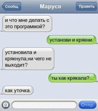 Shаk3r: Вась, слушай, ну все делаю, как ты говоришь... Я конечно понимаю, что Светка дура и вообще страшная жутко, но ведь на то и рассчитываю, что поэтому и даст легко. А она - ни в какую. Где я ошибся?