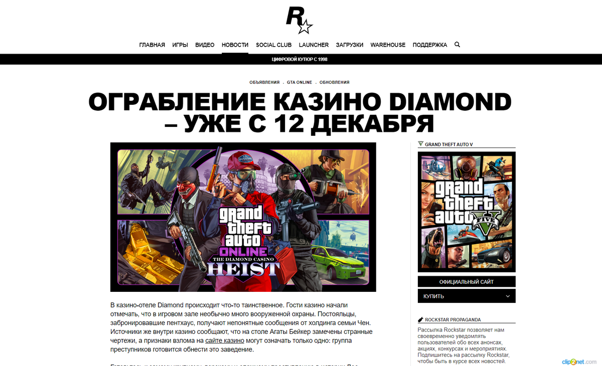 Официальная информация от рокстар про новое обновление в GTA Online: Ограбление казино Diamond