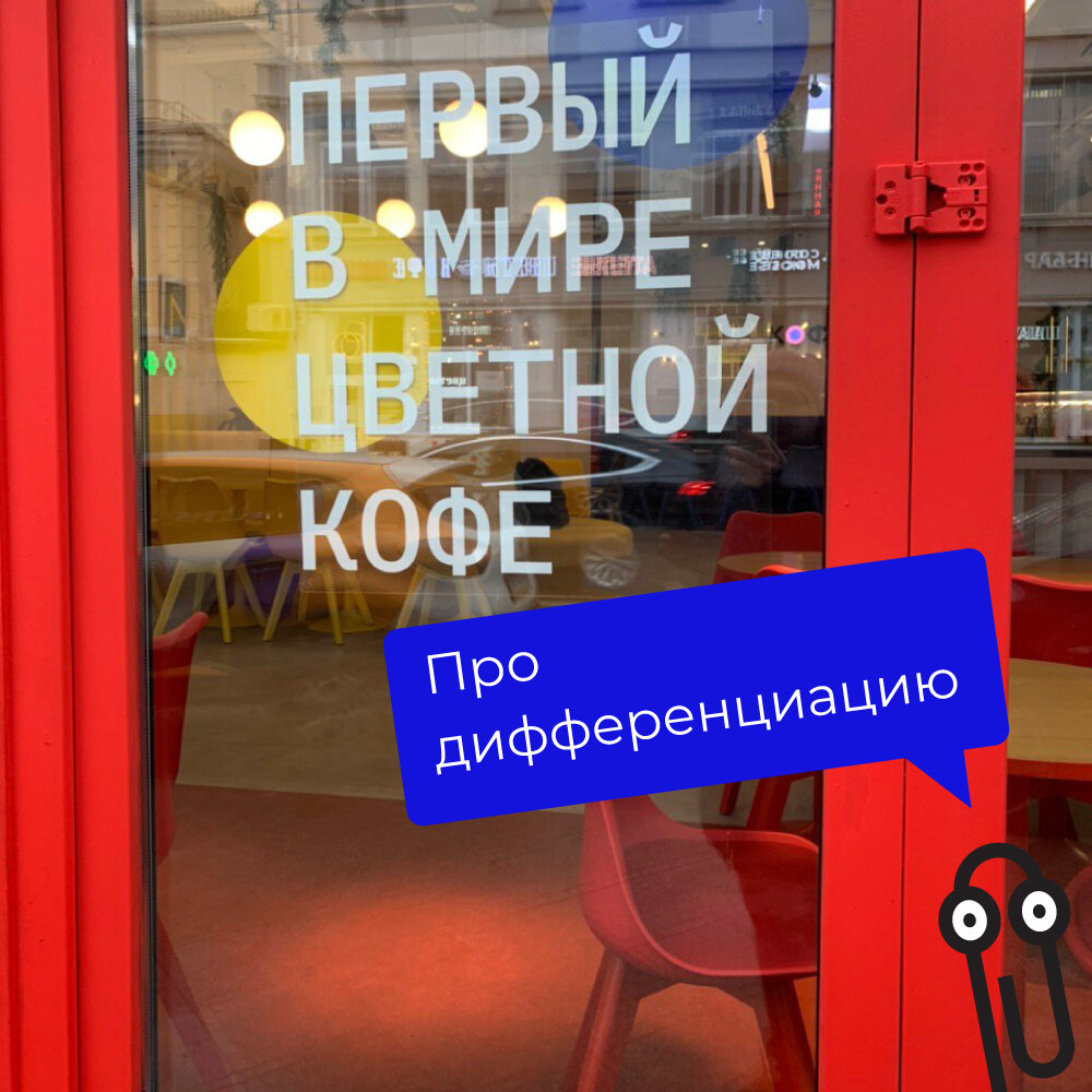 Ребята из Кофецвет @coffeecvet решили применить стратегию дифференциации продукта и сделали цветной кофе ☕. Они отстроились от конкурентов и предложили покупателям не просто чёрный, а разноцветный кофе. Причем идея проявляется не только в напитках, но и в дизайне интерьера, и в цветных десертах. У ребят ярко и необычно. В ценностях бренда — радость. Кому понравится?