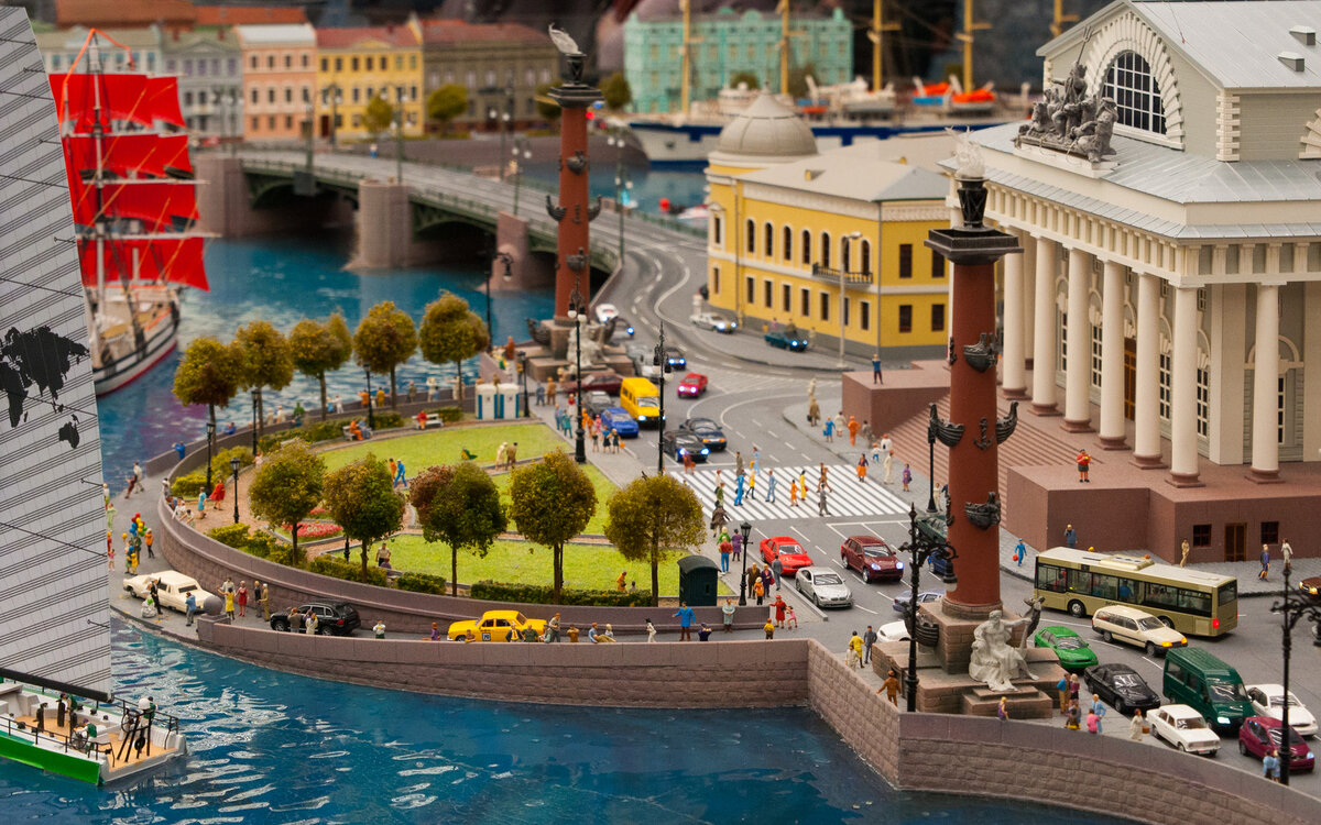 За один день можно совершить поездку по всей необъятной стране, созерцая её в миниатюре. Для тех, кто хочет увидеть всю северную державу от Владивостока до Калининграда всего за несколько часов, в Санкт-Петербурге есть Гранд Макет Россия, или Великая Модель России. Построенная в течение пяти лет, более чем 400 моделистами, художниками и учеными-компьютерами с использованием обширных деревянных рам и многих тонн гипса, масштабная модель представляет собой почти всю Россию. Многие из главных достопримечательностей и особенностей страны представлены здесь, хотя и не всегда точно, но зато как детально и интересно. От могучих Уральских гор до лягушки на берегу реки, от величественного Кремля до деревенской женщины, кормящей своих цыплят на дворе. В модели предусмотрена смена сезонов и дня с ночью. Около 500 000 светодиодов используются для создания ночного эффекта. Ведутся миниатюрные пожары, и миниатюрные заключенные пытаются сбежать из тюрьмы. Крошечные машинки ездят по улочкам среди ак