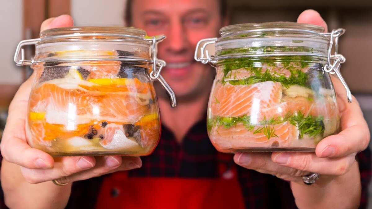 В этом ролик покажу как посолить красную рыбу быстро во влажном маринаде. И еще как посолить сухим способом в соли с лимоном. На самом деле, эти два рецепта подходят для любых видов рыб от семги и палтуса до сельди и любой другой. Два простейших маринада, которые вам обязательно понравятся. Ингредиенты: Приготовление: Первый маринад, который я покажу, это быстрый маринад. В кастрюлю наливаем 500 миллилитров воды, добавляем два лавровых листа, щепотку черного перца горошком, 35 граммов соли (столовая ложка с горкой) и 20 граммов сахара (столовая ложка без горки). Доводим до кипения, чтобы соль и сахар растворились. Филе форели освобождаем от костей и чешуи. Половину имеющегося филе нарезаем произвольные небольшими кусочками и отправляем их в миску. Заливаем остывшим рассолом из кастрюли. В рассоле оставляем фолель на час. Чем толще рыба, тем на большее время нужно оставлять рыбу в маринаде. Пучок укропа мелко рубим со стеблями. Чуть больше половины луковицы нарезаем полукольцами. В бано