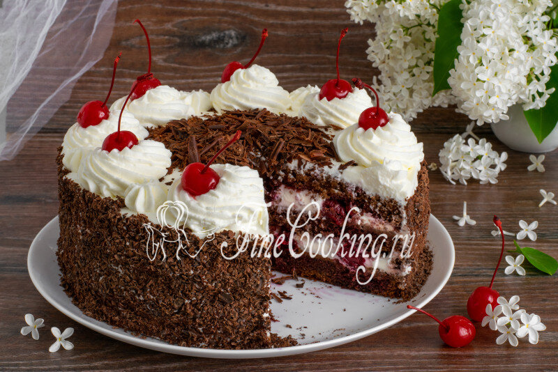 Торт Черный лес готов. Не хватает лишь изюминки этого десерта...