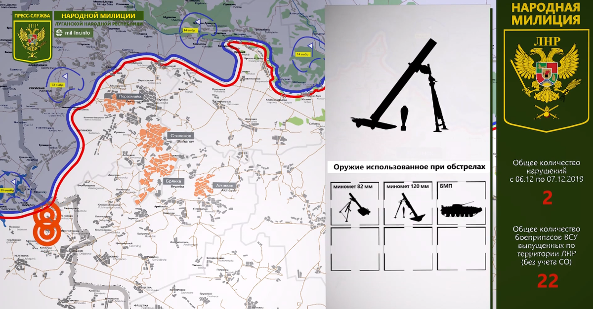 7 декабря 2019 Обстановка на линии соприкосновения за сутки | Карта обстрелов